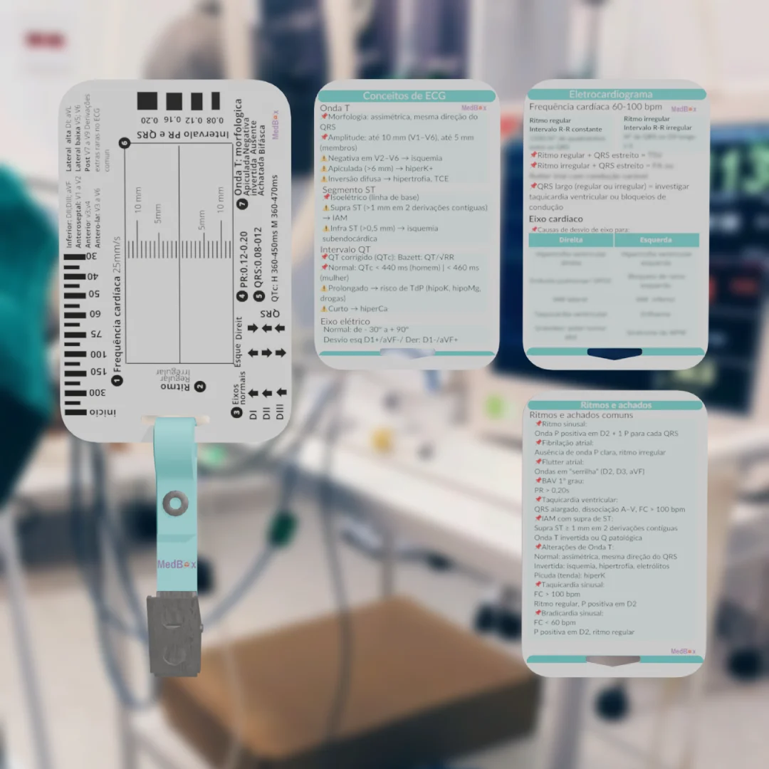 • O Combo ECG MedBox reúne os principais cards para consulta rápida durante estágios, atendimentos e plantões.
