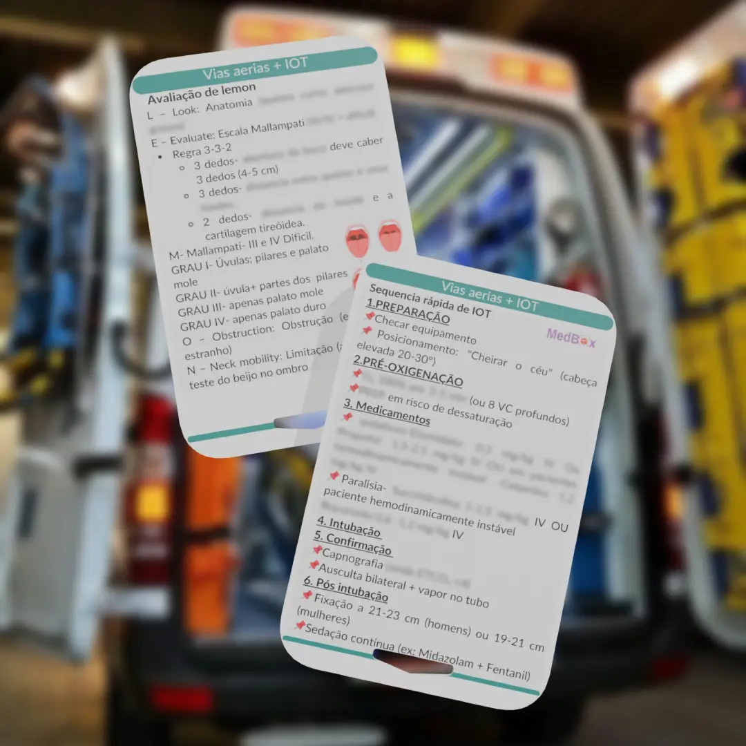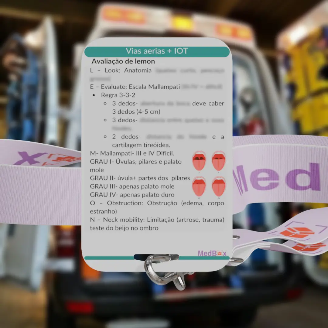 • O Card de Vias Aéreas e IOT organiza de forma prática todos os passos para avaliação e manejo seguro da via aérea, incluindo a sequência rápida de intubação orotraqueal (IOT). Contém: