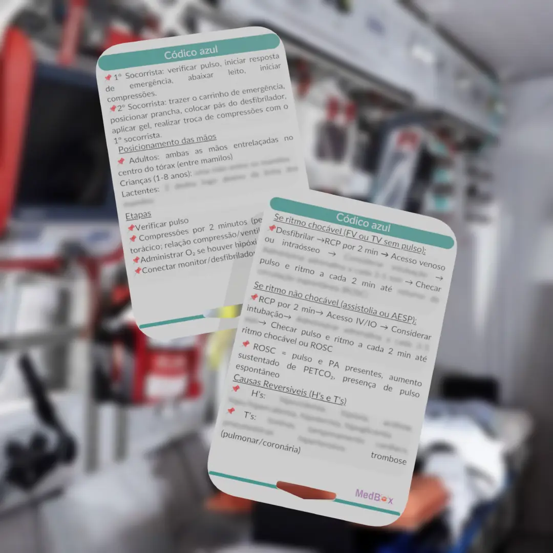 Os MedCards MedBox são ferramentas práticas e portáteis, criadas especialmente para estudantes e profissionais da saúde que atuam em urgência, emergência e plantões, permitindo consultas rápidas e decisões seguras.