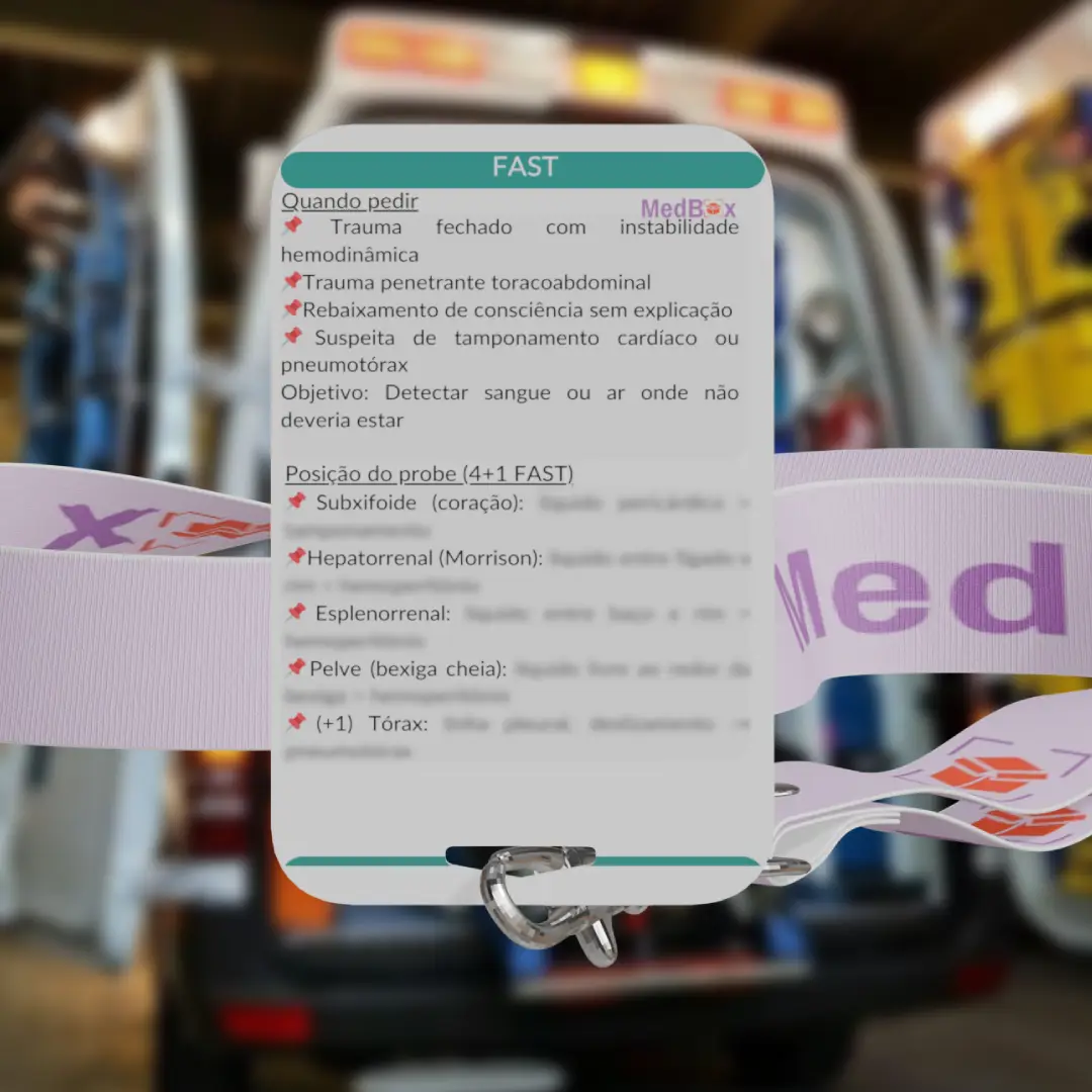 • O Card FAST organiza de forma prática a realização e interpretação do Focused Assessment with Sonography in Trauma (FAST), permitindo decisões rápidas em pacientes politraumatizados.