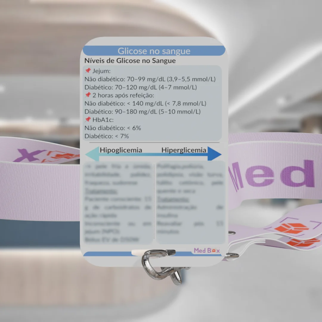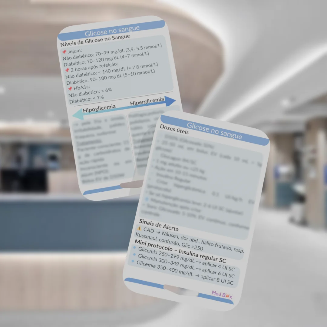 • O Card de Glicose organiza de forma prática os principais parâmetros de glicemia e condutas associadas, permitindo avaliação rápida e segura do paciente. Contém: